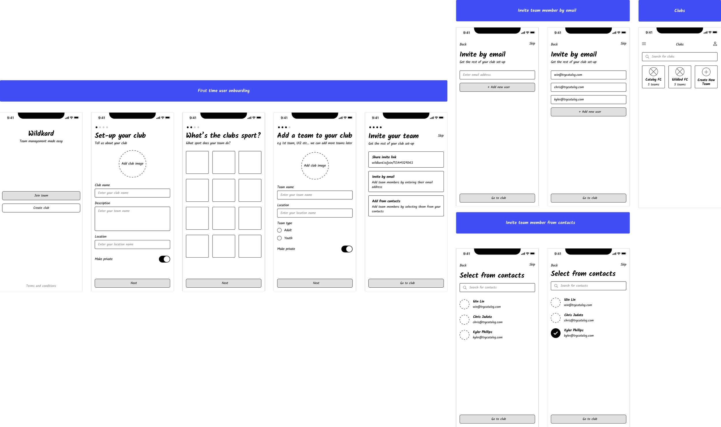 Here I feature some of the more complex flows in this project, such as the onboarding interactions in which users create and define their team and the admin area where admins can add / manage team members.